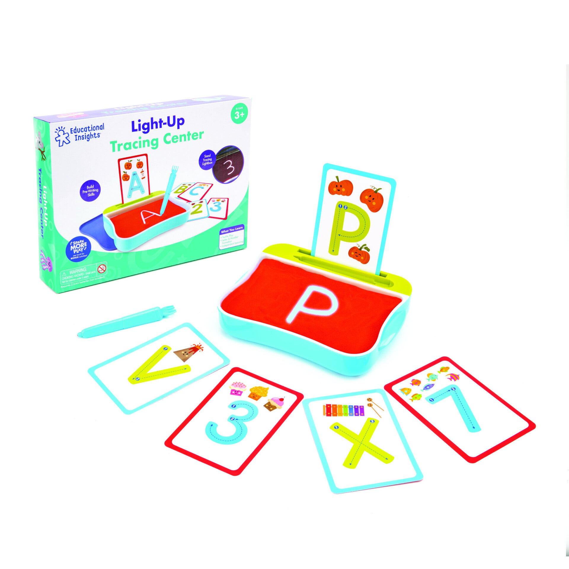 Schrijftafel met verlichting. Spelenderwijs werken aan de potloodgreep en het schrijven van letterklanken en cijfers.