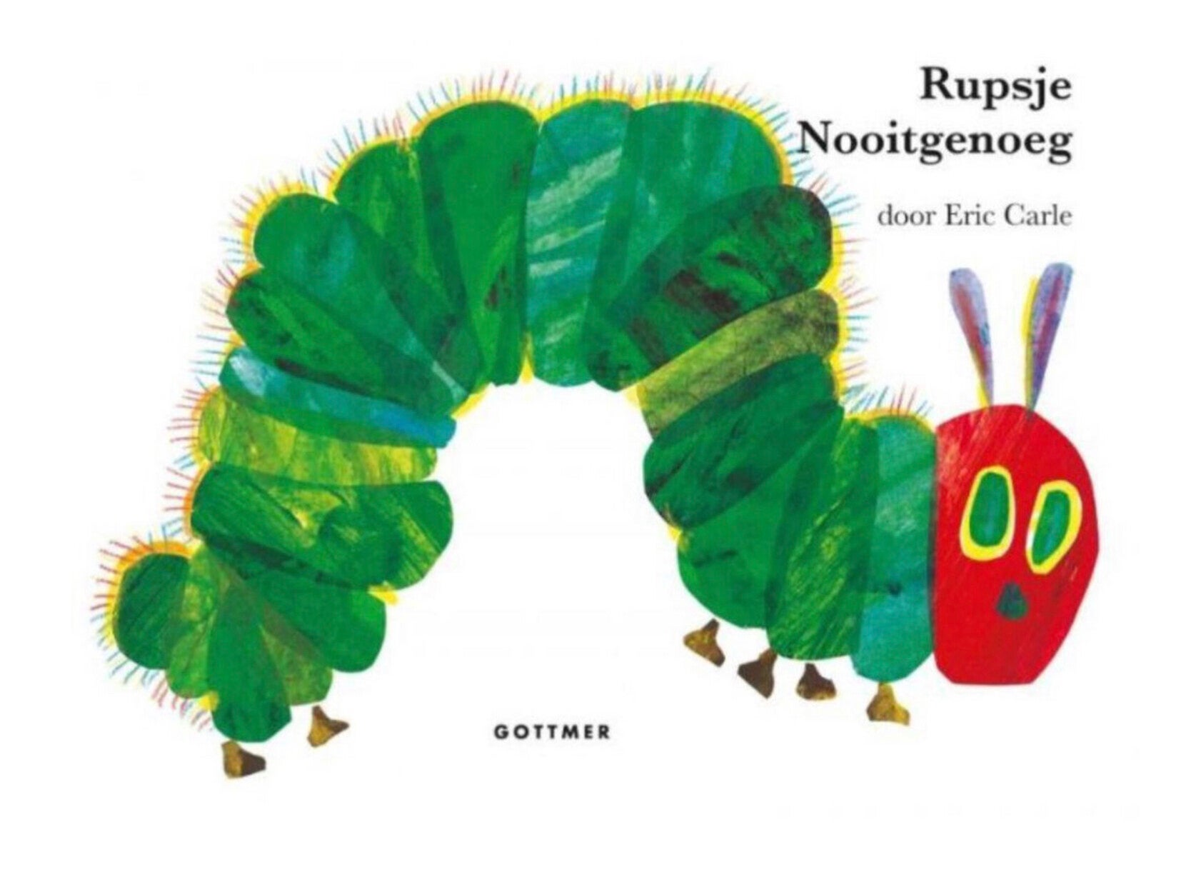 Het verhaal van Rupsje Nooitgenoeg is al tientallen jaren wereldberoemd. Rupsje Nooitgenoeg kruipt als een klein rupsje uit zijn ei. Hij heeft honger, dus begint hij met eten, maar hij blijft daar maar mee doorgaan. Hij eet zich door allerlei eten heen, tot hij een hele grote dikke rups is. Dan bouwt hij een huisje en daar komt hij weer uit als een mooie vlinder.