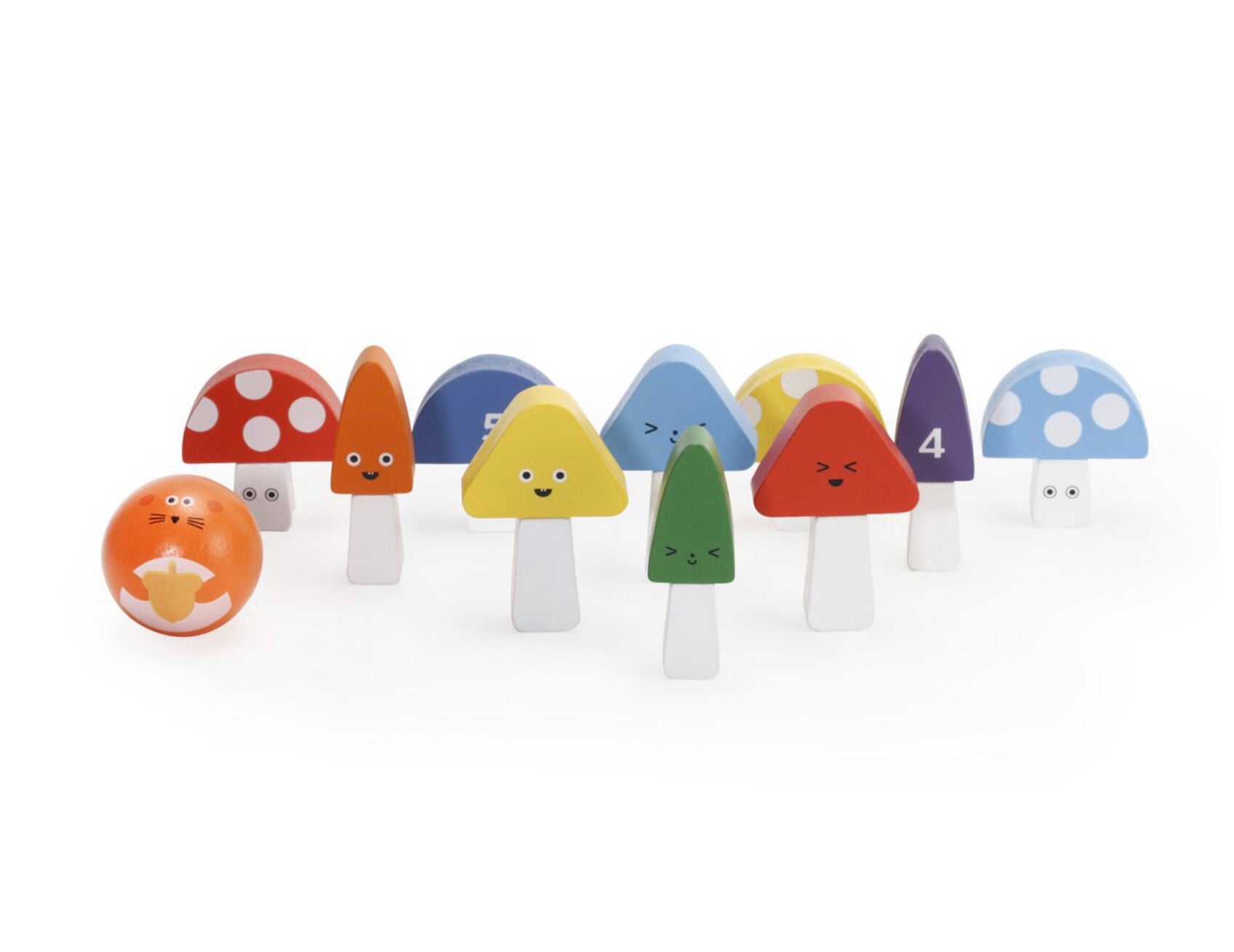 speel bowling of gebruik de paddenstoelen om te tellen t/m 5
