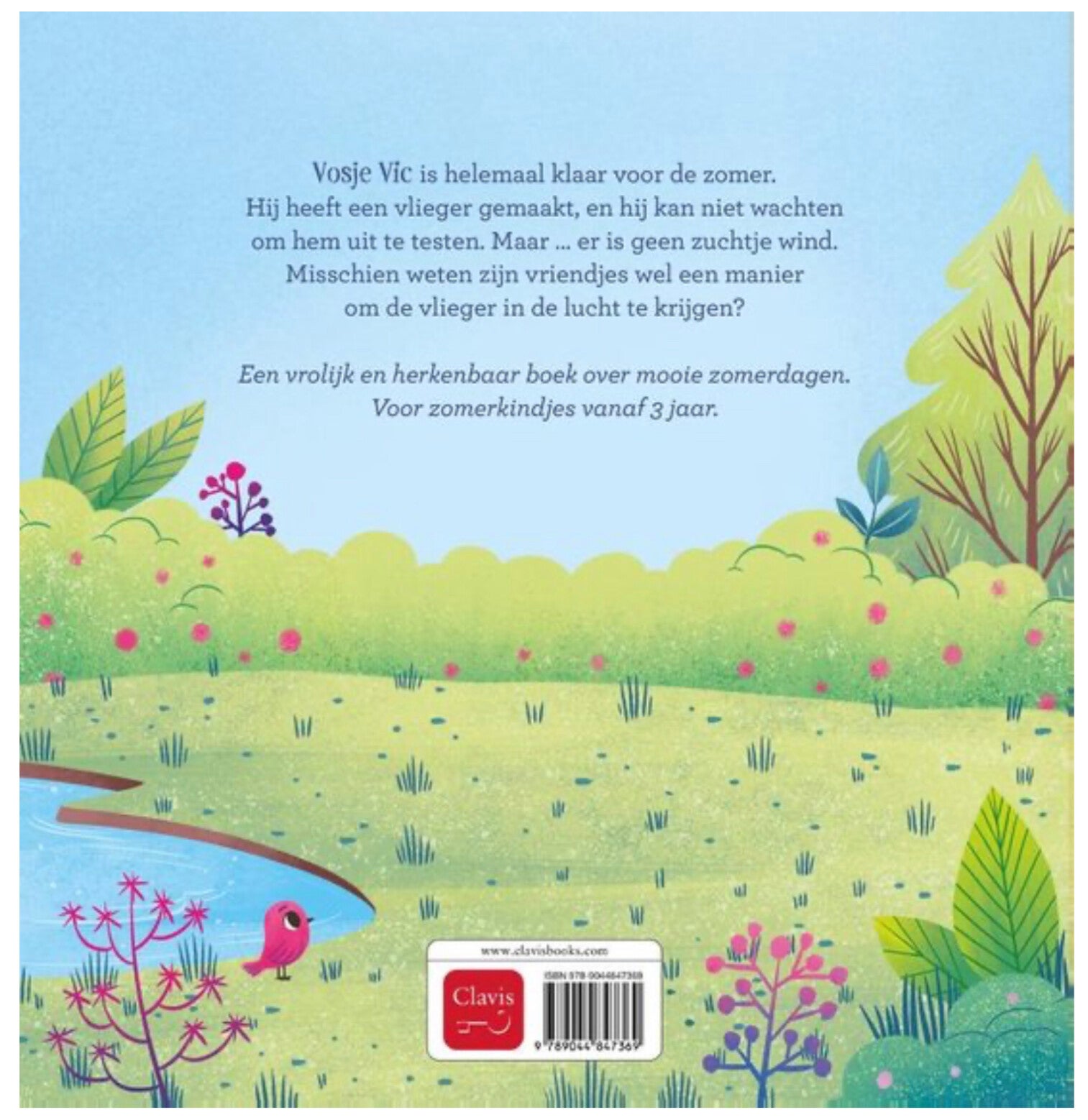 Vosje Vic is helemaal klaar voor de zomer. Hij heeft een vlieger gemaakt, en hij kan niet wachten om hem uit te testen. Maar … er is geen zuchtje wind. Misschien weten zijn vriendjes wel een manier om de vlieger in de lucht te krijgen? Een vrolijk en herkenbaar boek over mooie zomerdagen. Voor zomerkindjes vanaf 3 jaar.