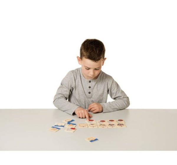 Een set van houten activiteitenkaartjes.