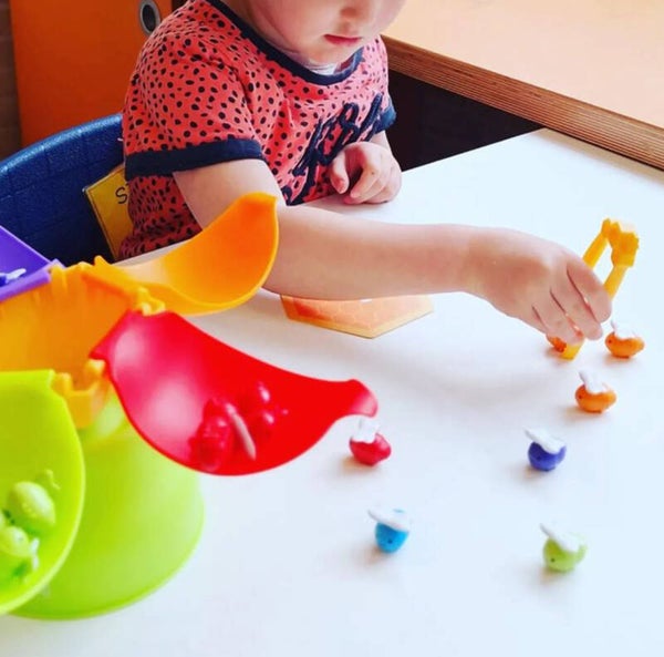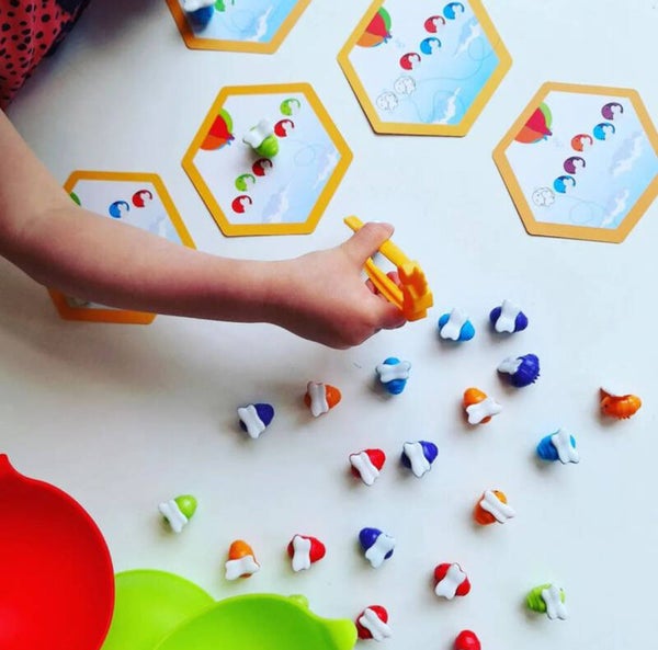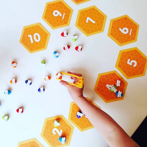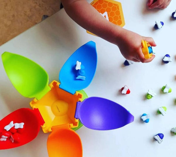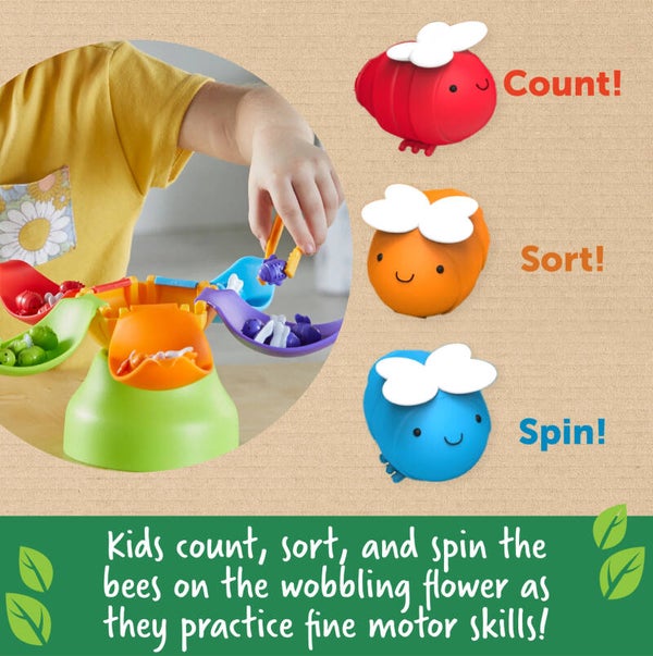 Deze balancerende bijen zoemen van nieuwe voorschoolse vaardigheden! Kinderen tellen, sorteren en draaien deze vriendelijke bijen terwijl ze de fijne motoriek oefenen. De tang en wiebelende bloem helpen kinderen het evenwicht, de coördinatie en meer te versterken. Bovendien vouwen de bloemblaadjes voor eenvoudige opslag. Inclusief kleurrijke activiteitengids!