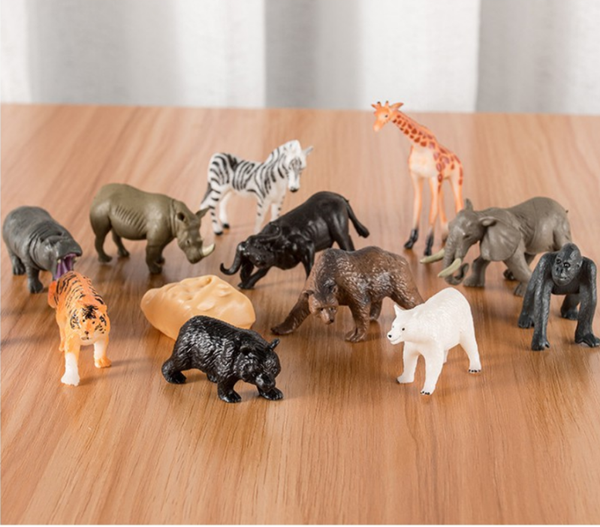 De set bevat 12 wilde dieren , 2 planten en 2 stenen . Realistisch ogende beeldjes zullen de verzameling van een kleine verzamelaar uitbreiden , een educatieve functie vervullen en voor veel plezier zorgen , waardoor de peute