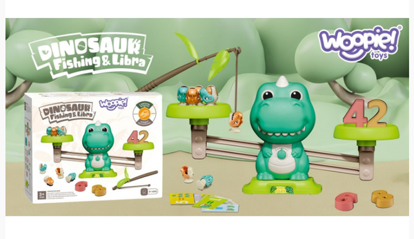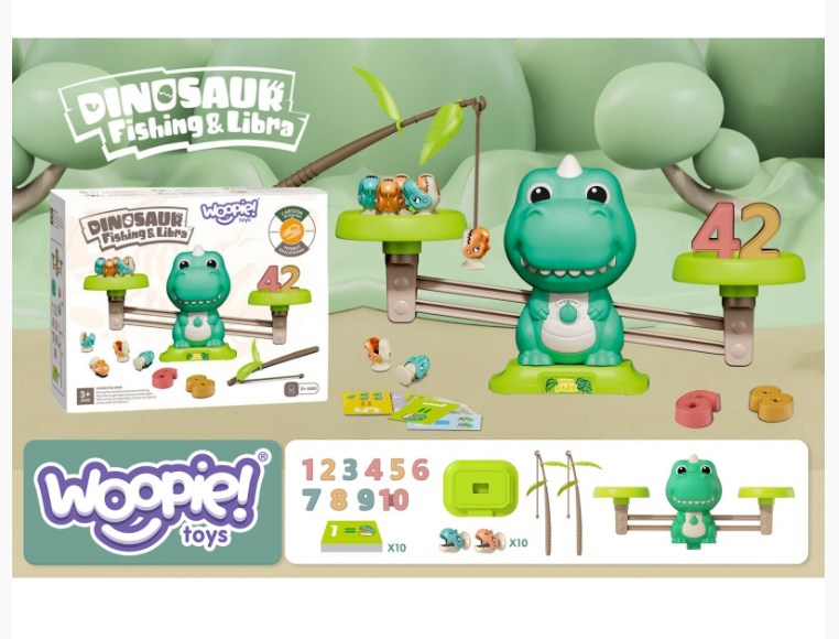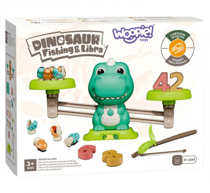 Een dinosaurus met een evenwichtsbalk van het merk WOOPIE moedigt je aan om meer te leren over de wereld, cijfers en wiskundige activiteiten, en tussen het leren door krijg je een pauze voor een spelletje dinosaurusvissen! . Op de basis staat een grote dinosaurus waarop we met de weegschaal kunnen spelen. Er zitten 10 gewichten in de set , één gewicht komt overeen met één dier uit de set, d.w.z. gewicht 1 komt overeen met één dinosaurus, gewicht 2 - komt overeen met twee dinosaurussen, enz. Daarnaast zijn er ook kaarten met acties en antwoorden. Dit speelgoed stimuleert perfect de verbeelding , stimuleert creatief en onconventioneel denken, ontwikkelt ook op wonderbaarlijke wijze de handmatige vaardigheden bij de jongste kinderen en zorgt ook voor veel plezier tijdens het leren.