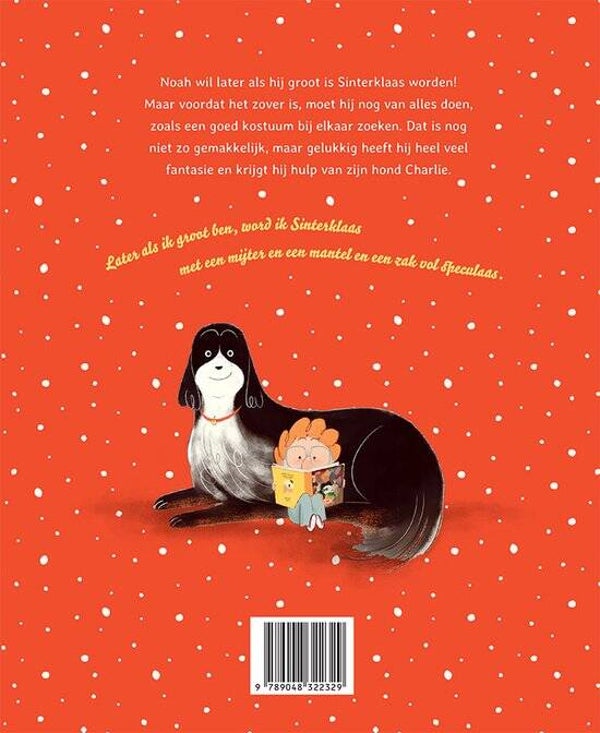Noah wil later als hij groot is Sinterklaas worden! Maar voordat het zover is, moet hij nog van alles doen, zoals een goed kostuum bij elkaar zoeken. Dat is nog niet zo gemakkelijk, maar gelukkig heeft hij heel veel fantasie en krijgt hij hulp van zijn hond Charlie. Later als ik groot ben, word ik Sinterklaas met een mijter en een mantel en een zak vol speculaas.