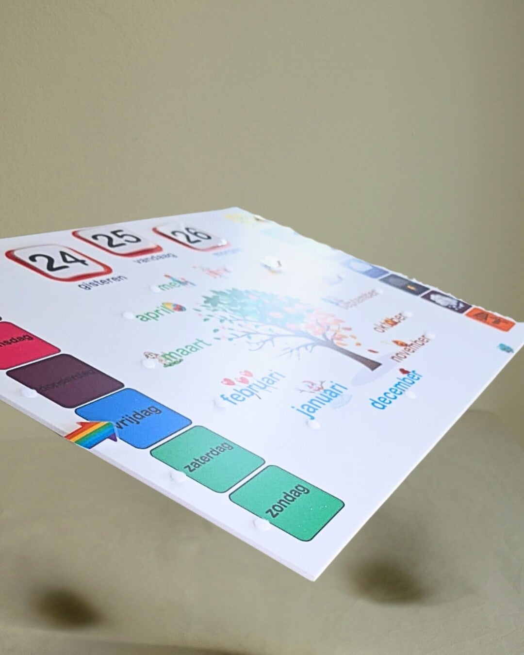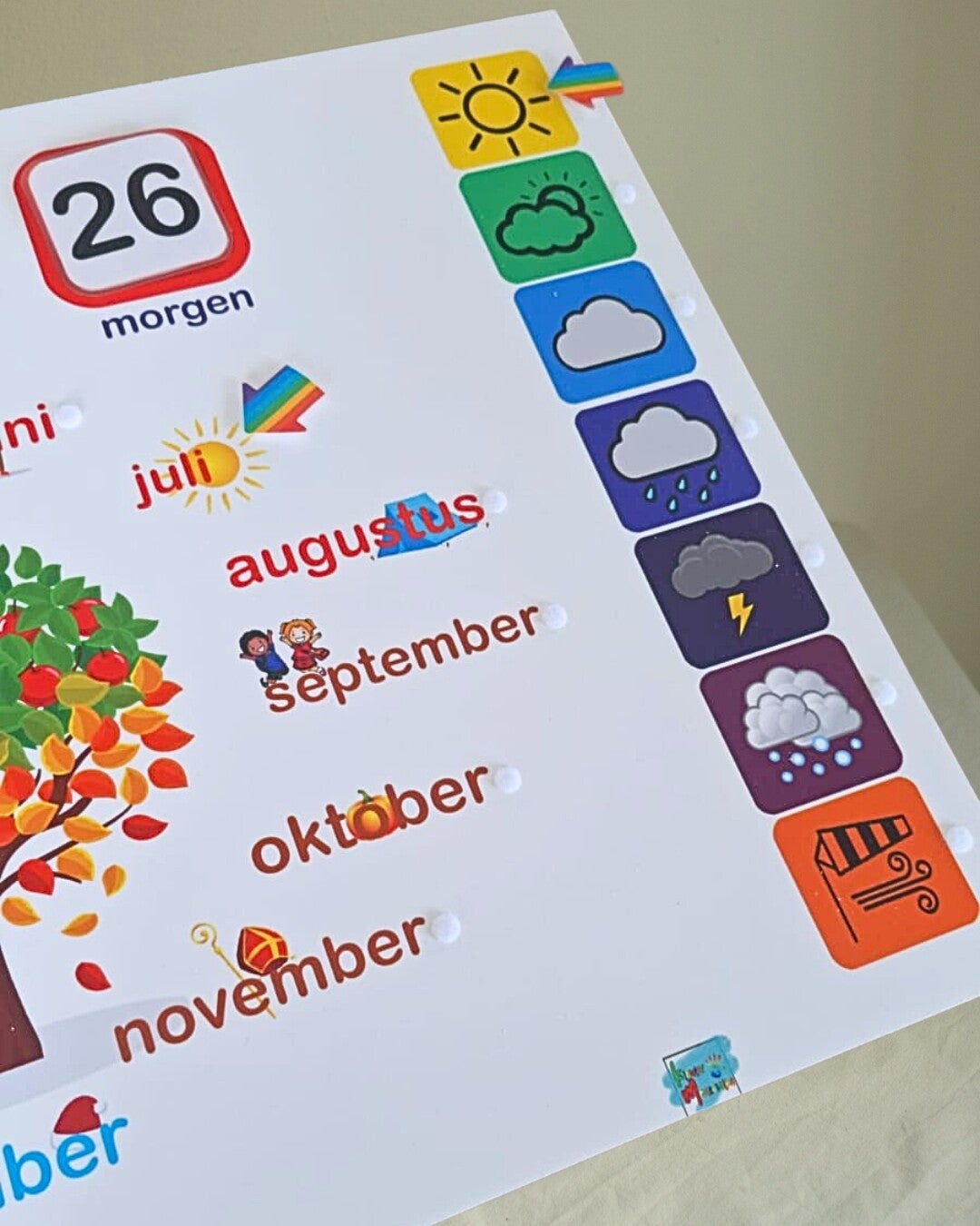 "Breng structuur en organisatie naar het klaslokaal met ons Kalenderbord, speciaal ontworpen voor educatieve omgevingen. Dit veelzijdige hulpmiddel is een essentiële aanvulling op elke klas, waardoor leerkrachten en studenten moeiteloos hun planning en activiteiten kunnen beheren. Met duidelijke secties voor datum, dag van de week, weer, speciale gebeurtenissen en meer, biedt ons Kalenderbord een overzichtelijke en interactieve manier om de tijd te visualiseren en belangrijke concepten te leren. Stimuleer betrokkenheid en leerplezier in de klas met ons Kalenderbord - de perfecte combinatie van functionaliteit en educatieve waarde. Ontdek vandaag nog hoe ons Kalenderbord het leerproces in jouw klas verrijkt en organiseert."