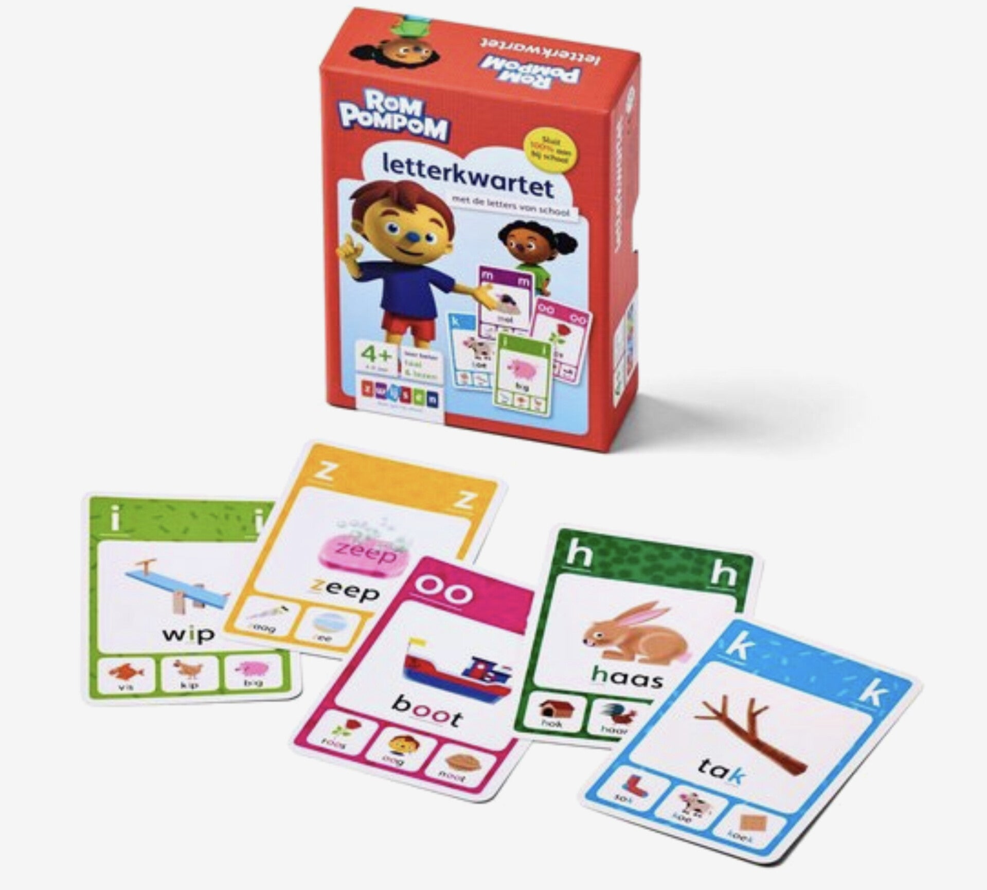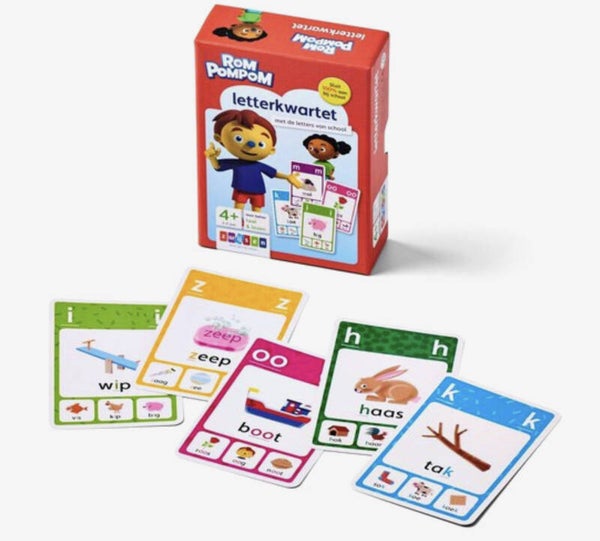 Dit gezellige kwartet is voor kleuters die het leuk vinden om met letters bezig te zijn. Zo kunnen ze thuis spelenderwijs oefenen met letters en woordjes. Dit spel kan met letters en woorden gespeeld worden, maar ook met de plaatjes en op kleur!