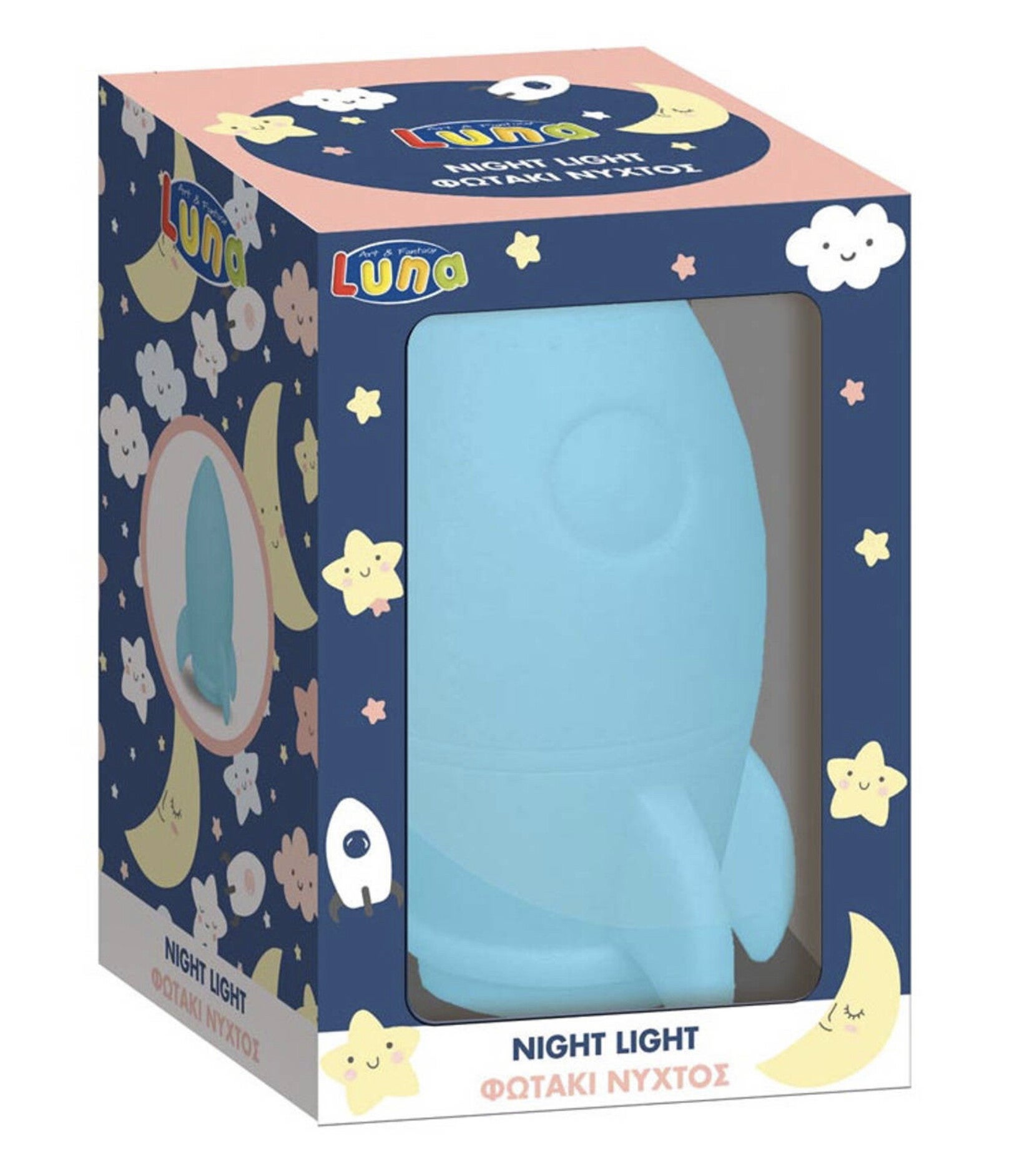 Blauwe raket met verlichting.