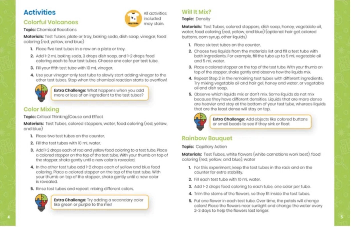 Met deze zet heb je eigenlijk je eigen mini laboratorium. Leer je kinderen dingen mengen zoals kleur. Er zit een opdrachtkaart bij met 4 kindvriendelijken opdrachten (helaas wel in het Engels)